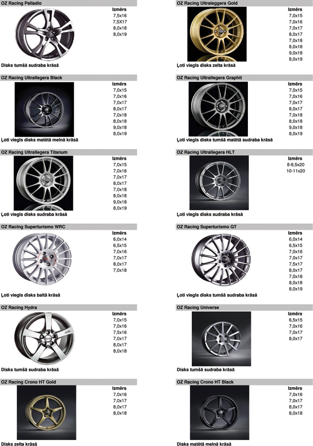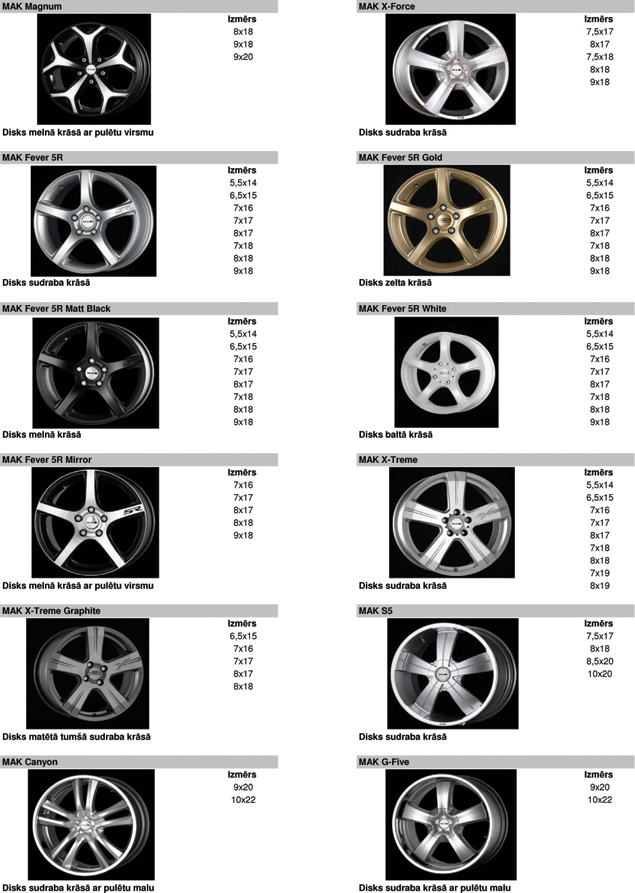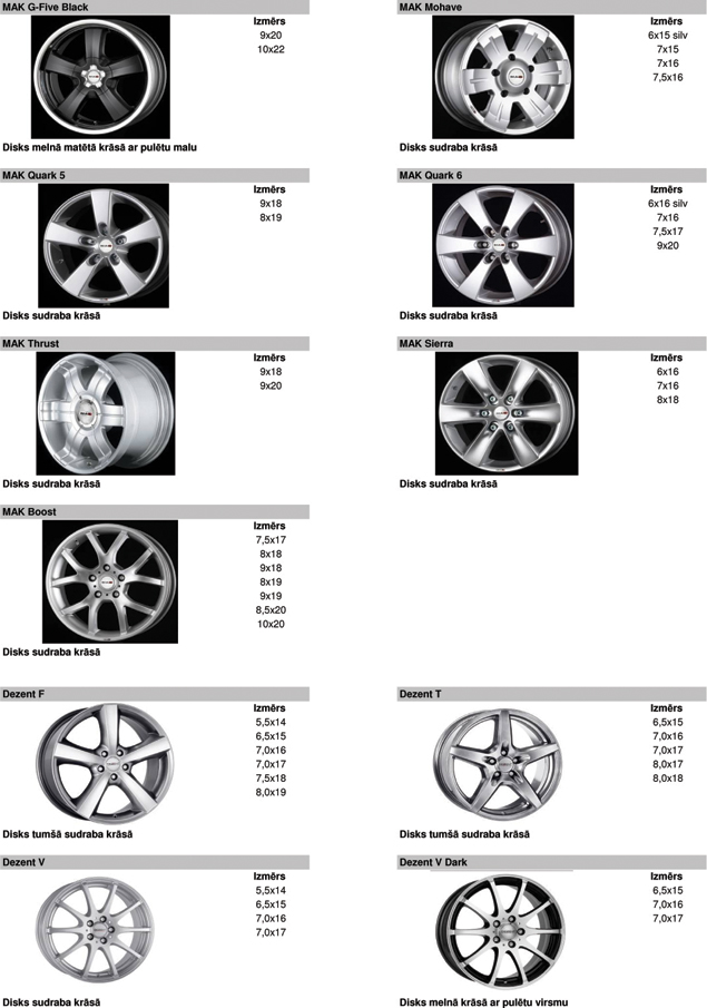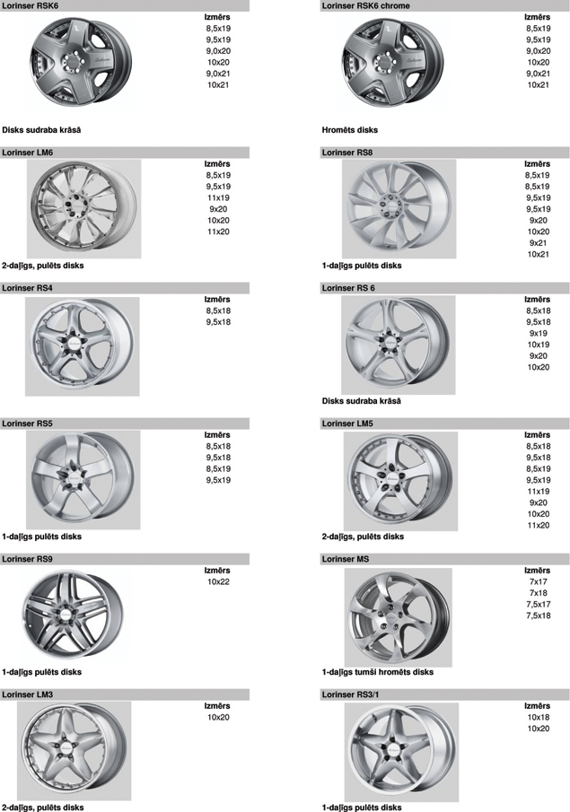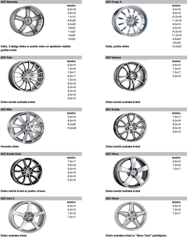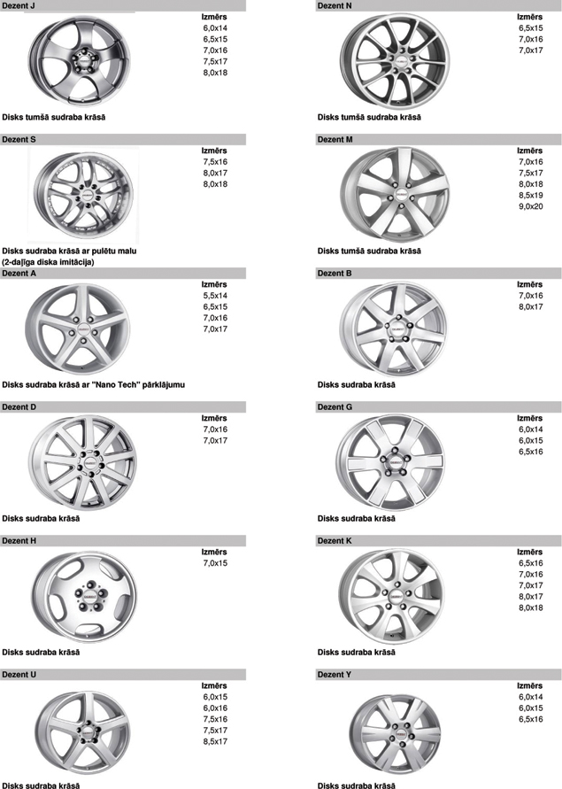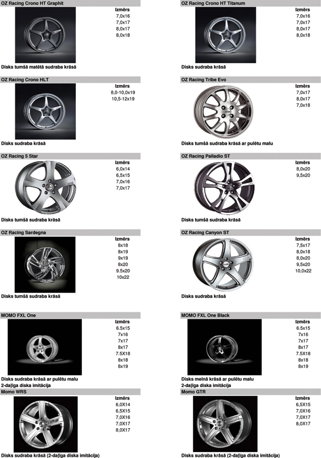 Vieglmetāla disku katalogs