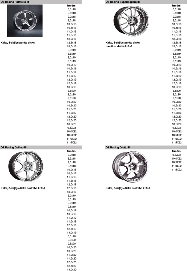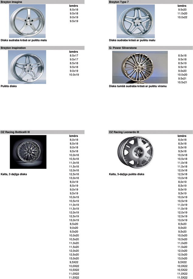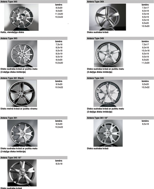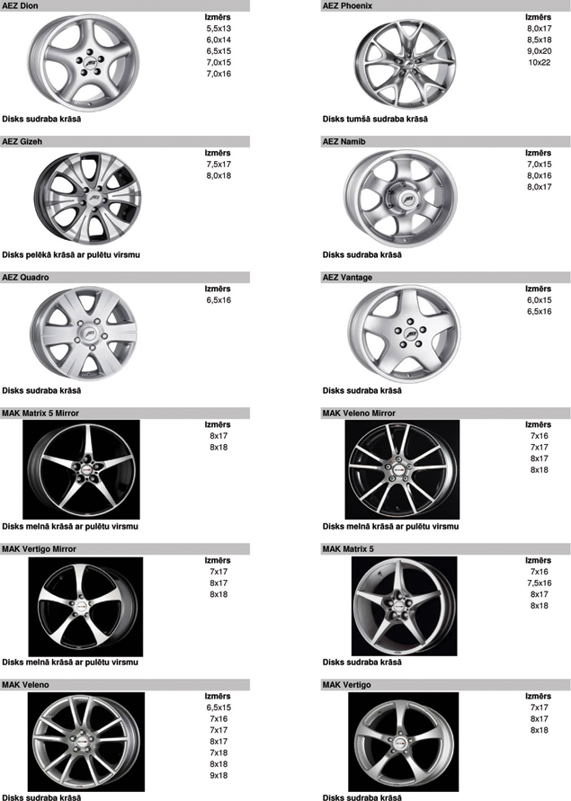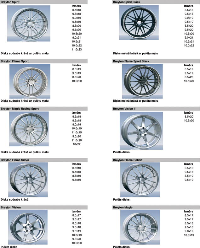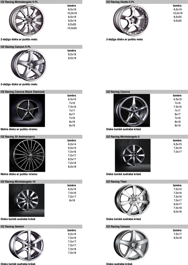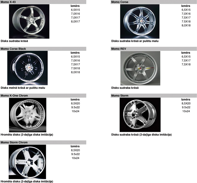 Vieglmetāla disku katalogs